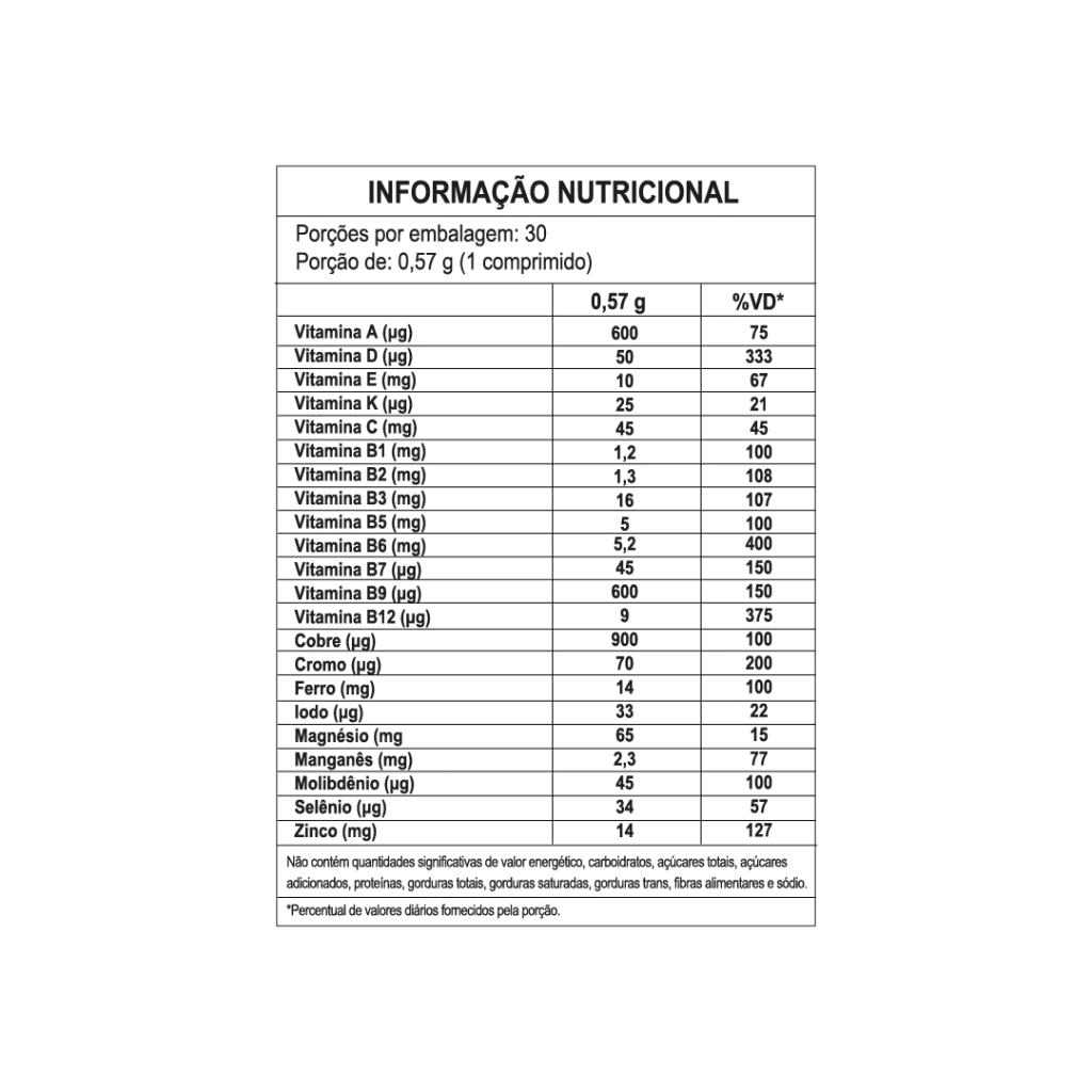 · Suporte Geral à Saúde: A ampla gama de vitaminas e minerais na fórmula garante um suporte abrangente para diversas funções corporais. Isso promove um estado geral de bem-estar, ajuda a manter o funcionamento eficiente do organismo e previne deficiências nutricionais.